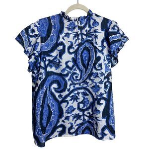 La Plage Blue Ruthie Ruffle Top Sz. M