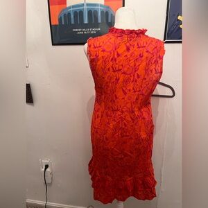 La Plage Mini Dress that's 100% cotton. Has an abstract print with a red/orange base, great condition.