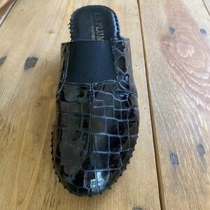 La Plume Black Patent Leather Slip on Shoes Croc Pattern