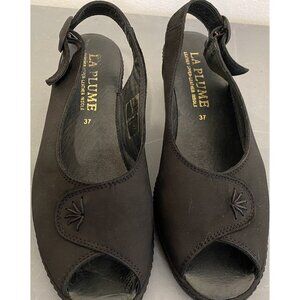 La Plume leather black wedge open toe sandal size 6.5 Great Condition