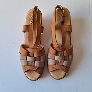 La Plume Mustard Yellow & Gray Suede Strappy Sandals - Size US 9 (UK 40)