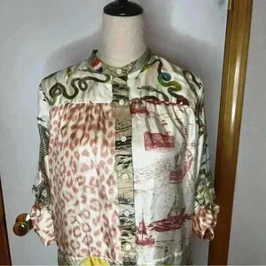 La Prestic Ouiston Open It Mao Collar Blouse Dress All Over Print Size 0 (US 4)