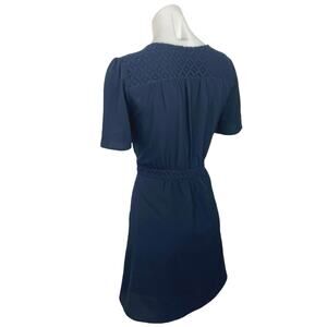 La P'tite Etoile Blue V Neck Button Front Short Sleeve A Line Mini Dress Size 2
