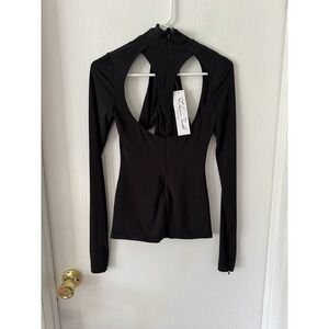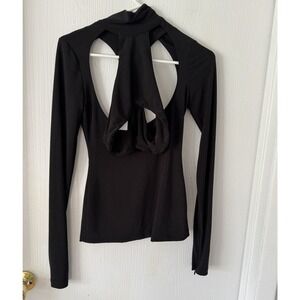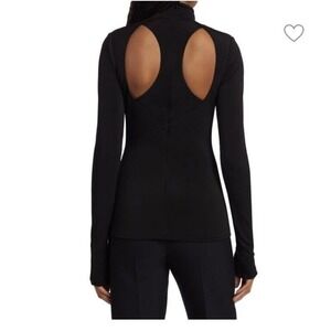 This iconic top boasts a structural design, featuring a chic turtleneck and cut outs.