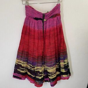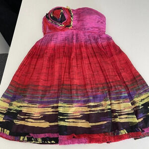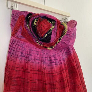 La ROK Strapless Babydoll Empire Waist Mini Dress XS Silk Blend Pink Red Party