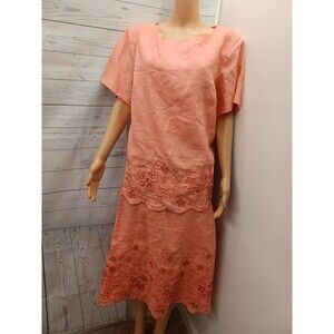 La Rea Collection 100% Linen Suit Set Skirt Top Sz XL Coral Pink