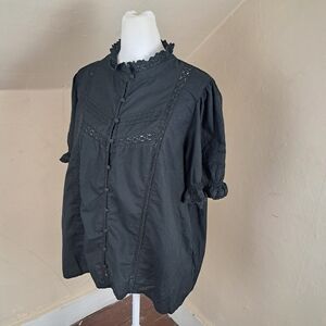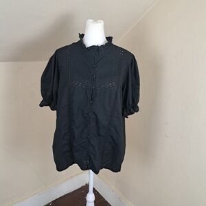 La Redoute Collection Camicia Black Embroidered Blouse Size 48F (18)
