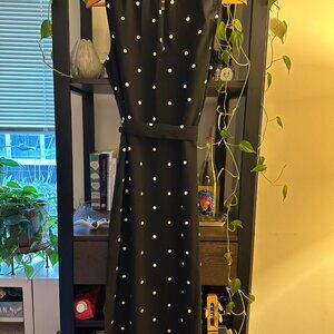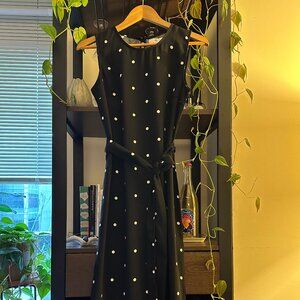Classic, flowy, Pretty Woman-esque belted dress from French brand La Redoute. Navy blue with white polka dots. Completely gorgeous on and in great, hardly worn condition--just no longer fits me!