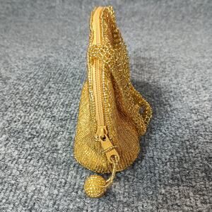 La Regale Beaded Evening Bag Womens Gold Mesh Mini Purse Zip Closure Formal