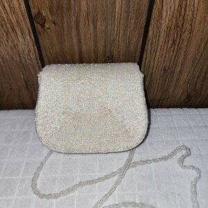 This La Regale beaded purse is the perfect accessory for any formal occasion. The square shape and snap closure make it easy to carry, while the shoulder strap adds a touch of elegance. The Ivory exterior color and ivory lining color provide a classic look, and the beaded accents give it a unique touch. Measuring 2 inches in width, 4 inches in height and depth, this small bag is perfect for carrying your essentials. It is a vintage piece with a modern twist, and is handmade in China. Whether you're attending a wedding or a cocktail party, this purse is sure to complement your outfit.