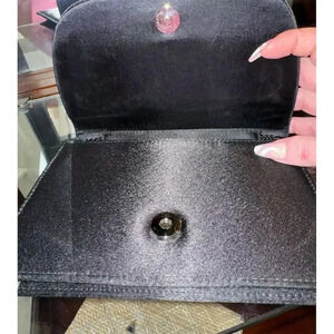 La Regale Black Satin Clutch Crossbody Purse Party Cocktail Bag