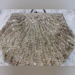 La Regale Clutch Crossbody Purse Metallic Beaded Silve Evening Formal Party CHIC