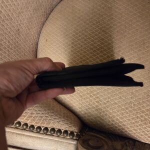This elegant black clutch is perfect for evening events. It features a stunning rhinestone detail that adds a touch of glamour. Ideal for carrying your essentials in style.