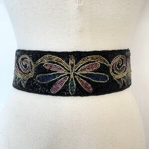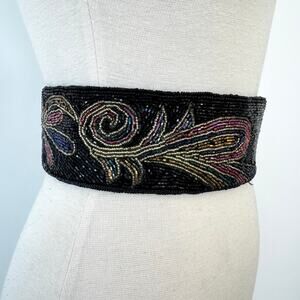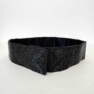 La Regale Handmade Fully Sequin Embellished Belt Satin Black Multi L NWT
