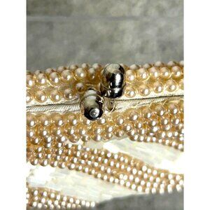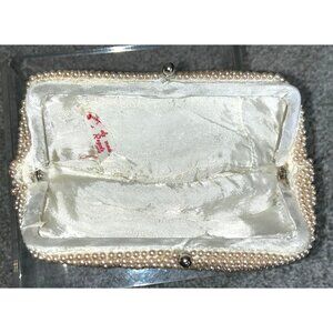 La Regale Hong Kong Vintage Kiss Clasp Beaded Evening Bag in Cream/White