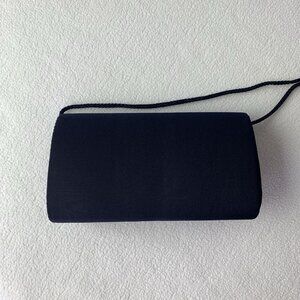 La Regale Navy Blue Fabric Rectangle Clutch Shoulder Evening Bag Purse 90’s