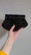 Ornate, all-over micro seed beading in luxuriously faceted deep black colorway with scalloped edge, structured fold-over close clasp.