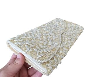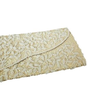 La Regale Vintage Beaded Elegant Cream Clutch Bag