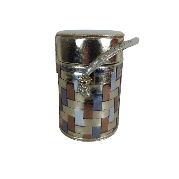 La Regale Vintage Gold Silver Gray Brown Metallic Crossbody Box Basket Weave Bag
