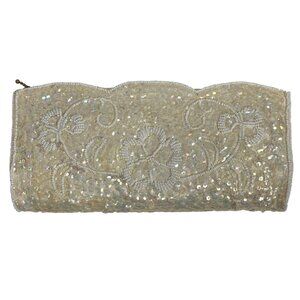 La Regale Vintage Ivory Beaded Sequin Floral Evening Clutch Purse With Box