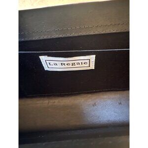 A sophisticated and timeless accessory, this satin evening bag by La Regale features a structured design with a snap closure and a single handle.