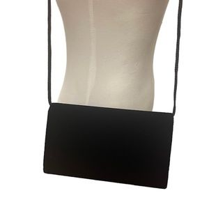 La Regale evening bag - NEW WITH TAGS - Black velvet evening bag with black satin bow and rhinestone embellishment with black cord shoulder strap. - Can be worn as a clutch or shoulder bag - 9" x 5" x 1.5". strap 21" drop - Style #2493233 - Original retail $59.
