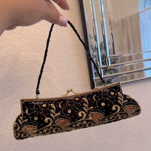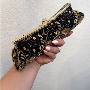 La Regale vintage beaded bag Elegant Black and Gold Embroidered Clutch