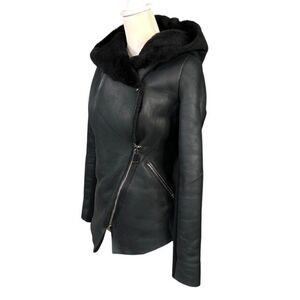 La Reine Blanche Hooded Lambskin Sherpa Lined Women's Jacket Size 36 EU 6 US