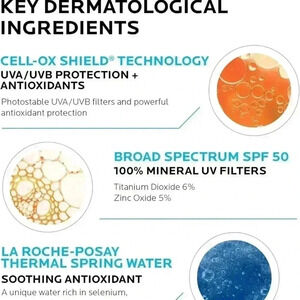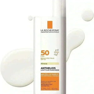 La Roche-Posay SPF 50 Anthelios mineral ultra light sunscreen, untinted, unique patent pending combination of mineral sun filter with powerful antioxidants in a fluid texture to protect skin down to the cellular level. Broad spectrum UVA and UVB with Cell-Ox shield UV plus antioxidant protection. Addition antioxidants to help protect skin from al aggressors. The lightweight texture blends well and dries to a matte finish.