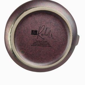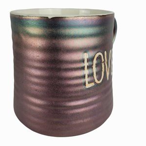Mug, coffee cup stoneware ceramic,has iridescent metallic hues of rose, teal