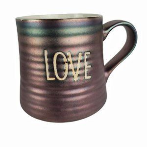 La Rochelle Metallic Rose Teal Love Ribbed Mug Coffee Cup Ceramic 4"H X 3.5"W