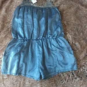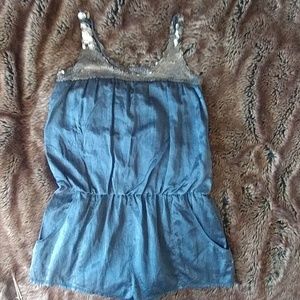 NWT. Charcoal gray silk w/sequence neckline and straps. Side pockets, gathered waist, side zipper. Really cute! New condition.