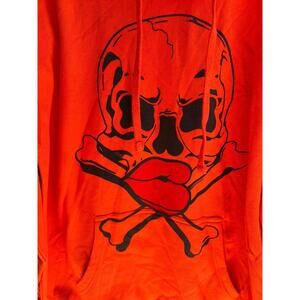 La Ropa Men's Orange Skull & Bone Rare Hooded Sweatshirt Red Size Large