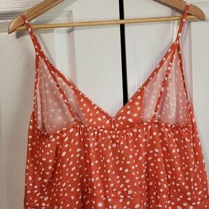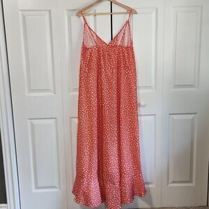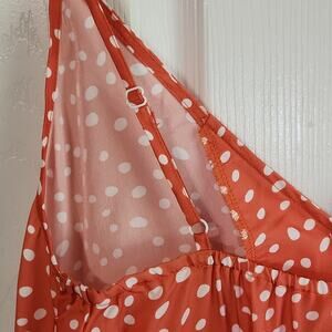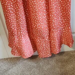 La' Ross Women's Orange & White Polka-dot Maxi High-Low Dress Size LG Ruffle NWT