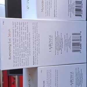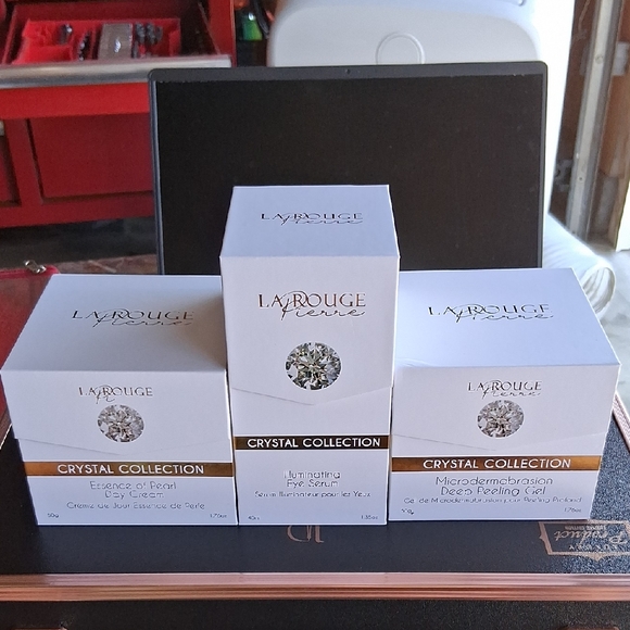 La Rouge Pierre Crystal Collection set includes Essence of Pearl, Luminating Eye Serum, and Microdermabrasion Deep Peeling.