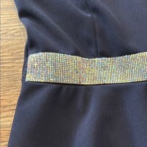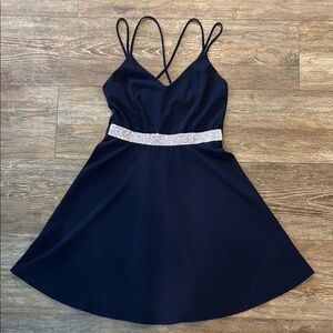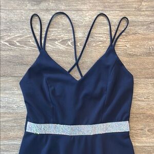 La Scala Women's Large Navy Fit & Flare Dress Spaghetti Straps & Sparkling Belt