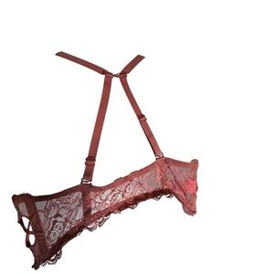 Beautiful La Senza Beyond Sexy push-up bra in a gorgeous pink shade with lace back detail and a convenient front closure. Features padded underwire cups for lift and support, adjustable straps (can be worn standard or crossed), and a flirty lace back design.