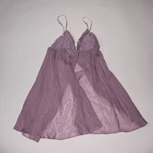 La Senza Lingerie Lilac Purple Semi Sheer Open Front Babydoll With Lace Ruffles