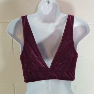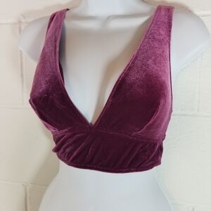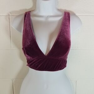pretty coquette sexy plunge deep v pull on bralette club going out lingerie whimsigoth festival velour comfy cozy raspberry wine mauve color