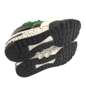 This hip pair of designer-inspired sneakers from La Sheelah feature a colorblock design in gray faux suede, white, green faux suede, shiny black patent, and camo fabric. The wedge 2.5" heel has a black spotted animal print.