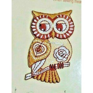 La Stephanoise Owl Applique Brown Tan White 2 x 1.5 inch Craft Sewing Fabric NEW