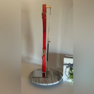 La Terra Vegan Leather Shoulder Medium Size Red Handbag Zipper and Snap Closure