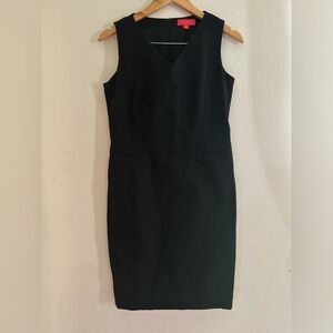 The Avia Black Sleeveless V-Neck Sheath Dress is a chic and versatile piece perfect for work or cocktail events. Its sleek sheath silhouette and mini length offer a modern and sophisticated look. Crafted from a solid black cotton fabric, this dress features a flattering V-neckline that adds a touch of elegance to its minimalist design. 97% Cotton 3% Elastene