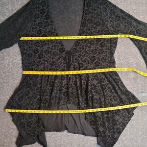 La Vanya Top Womens 3X Black Floral Mesh Babydoll Dark Fairy Bell Sleeve NEW