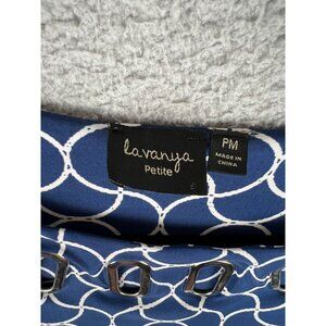 La Vanya Womens Blouse Metal Cut Out Collar 3/4 Sleeves Blue/White Petite PM