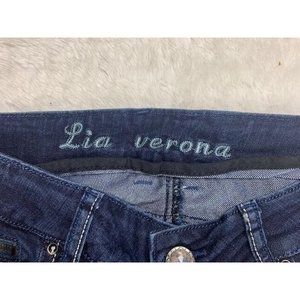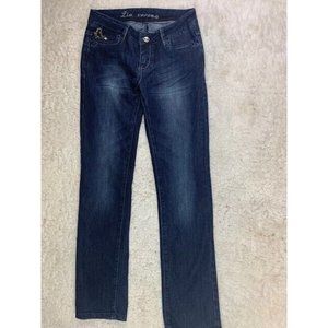La Verona Size 5 Womens Jeans Stretch Low Rise Dark Wash Bling Straight