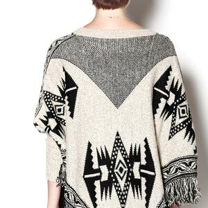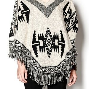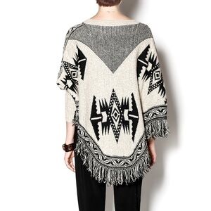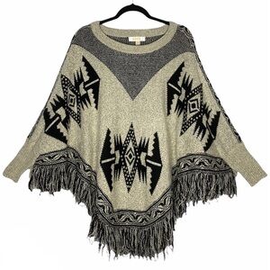 La Vie 89 Oversized poncho style sweater with fringed bottom Navajo Western