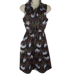 La Vie Lente Womens A Line Mini Dress Black Floral Hanging Sloth Print S