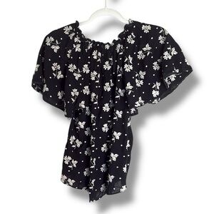 La Vie Rebecca Taylor Cotton Ruffle Off the Shoulder Floral Blouse Medium