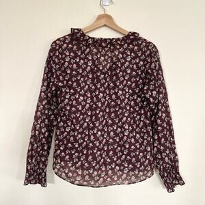 La Vie Rebecca Taylor Floral Cherise Ruffle Blouse XS Burgundy Metallic Stripe
